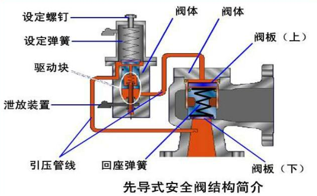 先導式安全閥類似壓力釋放閥,先導式安全閥用于救災應急期間的過壓事件(如,容器過熱和膨脹流體的壓力增加到危險水平)。也稱為先導式安全閥,先導式減壓閥,或先導式安全卸壓閥,根據(jù)制造商和應用。在技術上是最通用的術語,但是通常先導式安全閥是用于(如在本文中)是指:即液體閥。