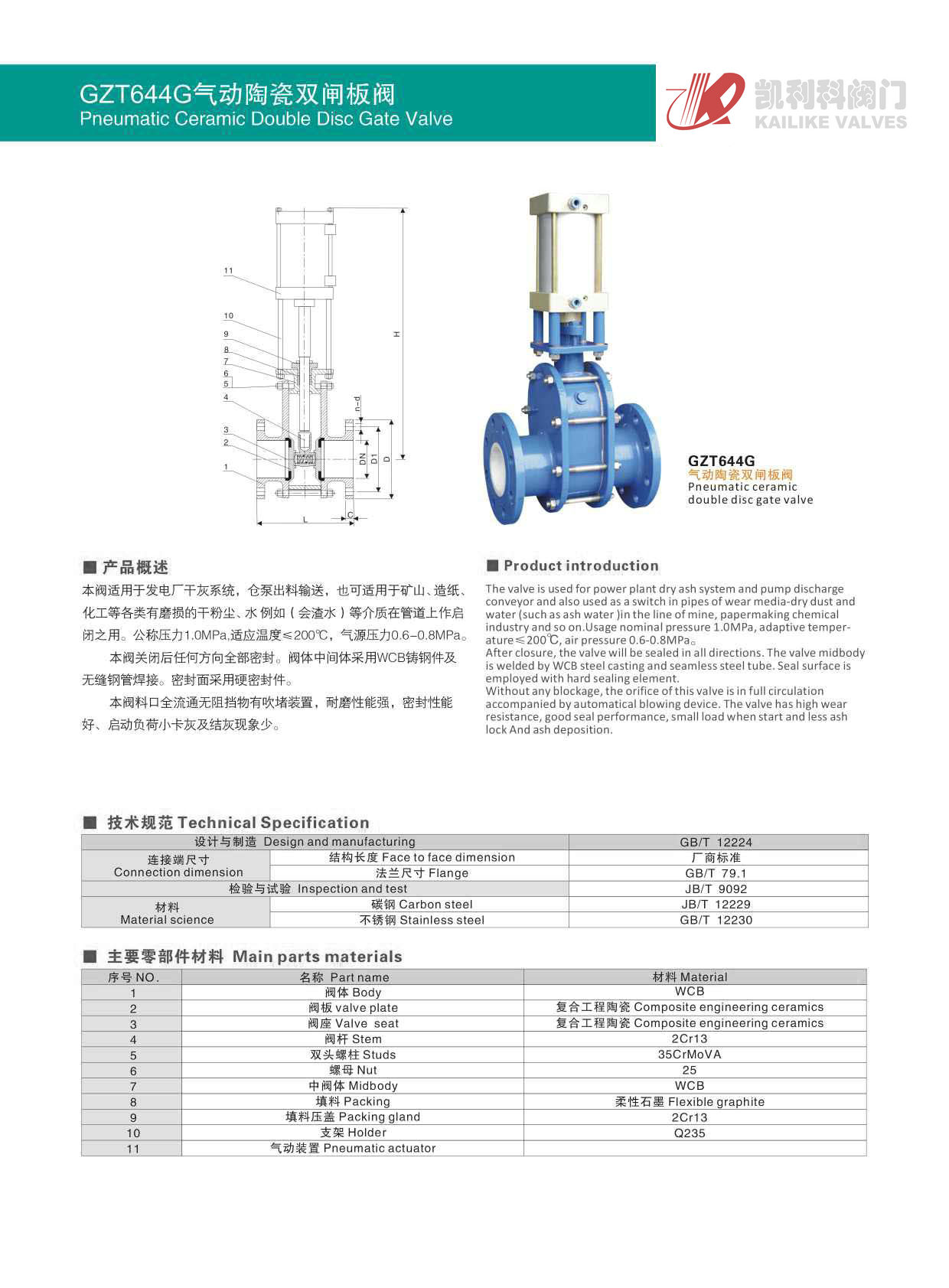 氣動陶瓷雙閘板閥關閉后任何方向全部密封。閥體中間體采用WCB鑄鋼件及無縫鋼管焊接。密封面采用硬密封件。